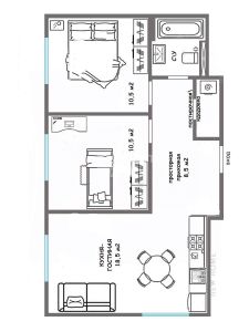 Идеальная 2-комнатная квартира (апартаменты) в ЖК "Самолёт " , позиционируется как евро трешка.