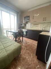 Изюминка этих апартаментов - огромная кухня-гостинная создает дополнительное пространство для отдыха . Обои под покраску - реализуйте свои фантазии в интерьере.