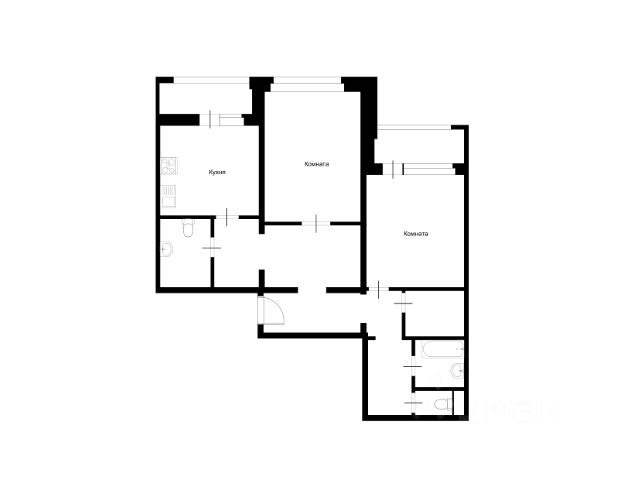 Евродвушка по цене однушки. Кухня перенесена в нишу в большой комнате. Одна комната 19,8 кв.м., вторая 9,6 кв.м. Требуется ремонт. Никто не прописан.