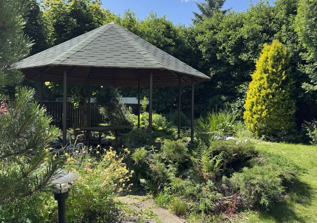 - беседка с зоной барбекю 12 кв.м, из дерева, свет подведен;