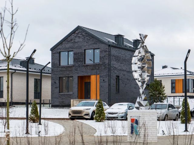 Дом 423 кв.м из бруса 150*150*6000, утеплен, обшит декоративным камнем со вставками под дерево из ясеня и дуба; 3 комнат, на каждом этаже имеется санузел.