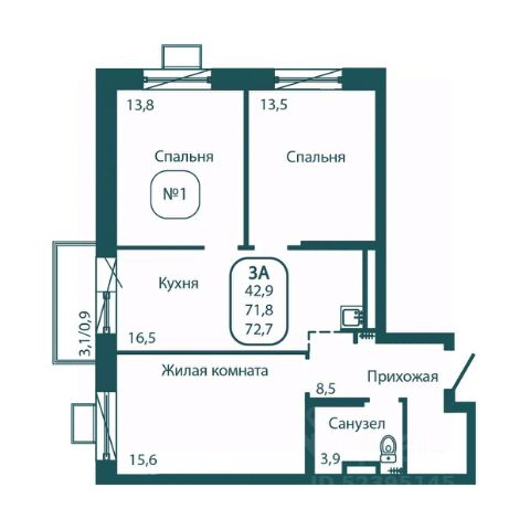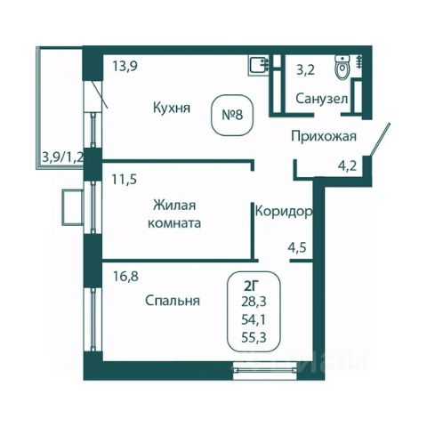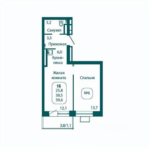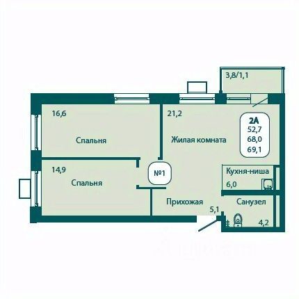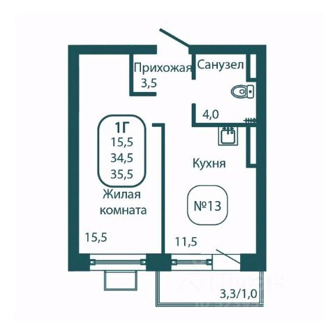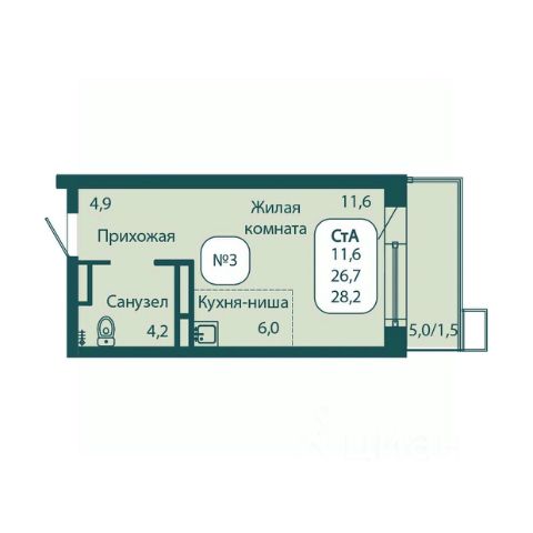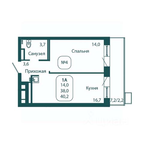 Планировка включает в себя просторную жилую комнату площадью 16,30 квадратных метра, где каждый сможет организовать своё личное пространство по собственному вкусу, а также кухню площадью 9,15 квадратных метров, которая ждёт вашего дизайнерского подхода и кулинарных экспериментов.