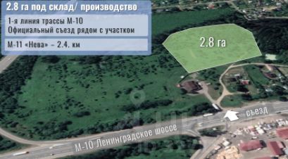 Земельный участок промназначения 2,8 га промназначения на 1-й линии М-10 (Ленинградское шоссе) для логистического или производственного комплекса.