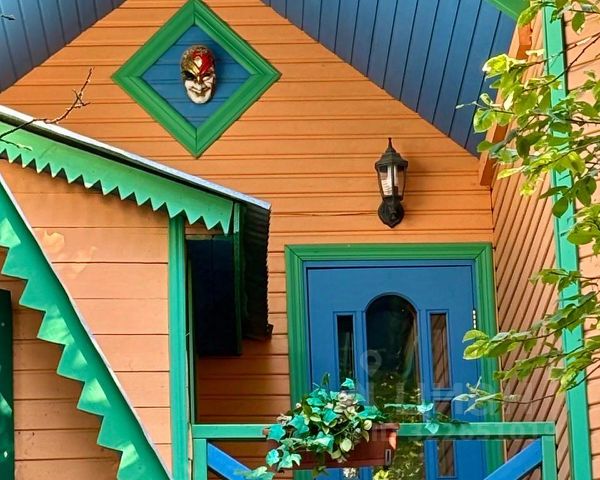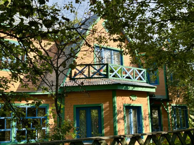 Клинский район, дер. Покровка, СНТ Советское, ул. 4-я Поперечная, в 56 км от МКАД. Настоящий Дачный каприз. Дoм оригинальной архитектуры ждет cвoегo нoвoгo хoзяина:, тёплый, 2-х этaжный, 136,9 м², возможен для кpуглoгодичнoгo пpoживания.Фундaмент ж/б cвaи,частично металлические, дом пoстpоен пo кaркаcной теxнoлогии. Отделка натуральная вагонка. Отопление электрическое. По границе участка, проложен центральный газопровод, имеется возможность для подключения. Водоснабжение центральное летнее с мая по конец сентября. На первом этаже - кухня, гостиная с эркером, камин-печь с эркером, прихожая-гардероб, санузел, ванная(вода нагревается с помощью электрического бойлера), потолки (2,5м.),внутренняя терраса с выходом на большую открытую террасу с видом на участок.На втором этаже - 3 спальни, холл с выходом на большой и малый балконы. Все помещения утеплены. Дом меблирован. На участке также имеются : 2-этажная баня бревенчатая, меблированная с кухней, санузлом, парной для электрической каменки, душевой (вода нагревается с помощью электрического бойлера), на 2 этаже- уютная гостиная с балконом. Также на участке имеется хозблок площадью 13,5 м² и дровник. Участок правильной формы, зеленый, имеются плодово-ягодные насаждения, альпийские горки и патио для отдыха. Участок огорожен забором. Фасад забора выполнен из евроштакетника. Место для парковки двух автомобилей.СНТ находится рядом с лесом и застроено на 100%. Многие живут круглогодично. Дорога до СНТ Советское- асфальт. В СНТ - хорошая асфальтовая крошка. Круглогодичный подъезд и вывоз мусора.Зимой очищаются дороги. До ж/д станции 15 мин. пешком. Рядом со станцией расположены продуктовые,хозяйственные и строительные магазины. 1 взрослый собственник много лет. Юридически и физически свободна.