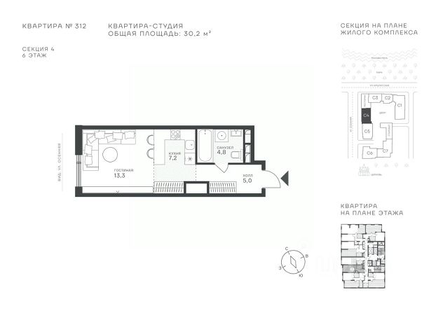 Студия · 30,3 м² · 6/43 этаж