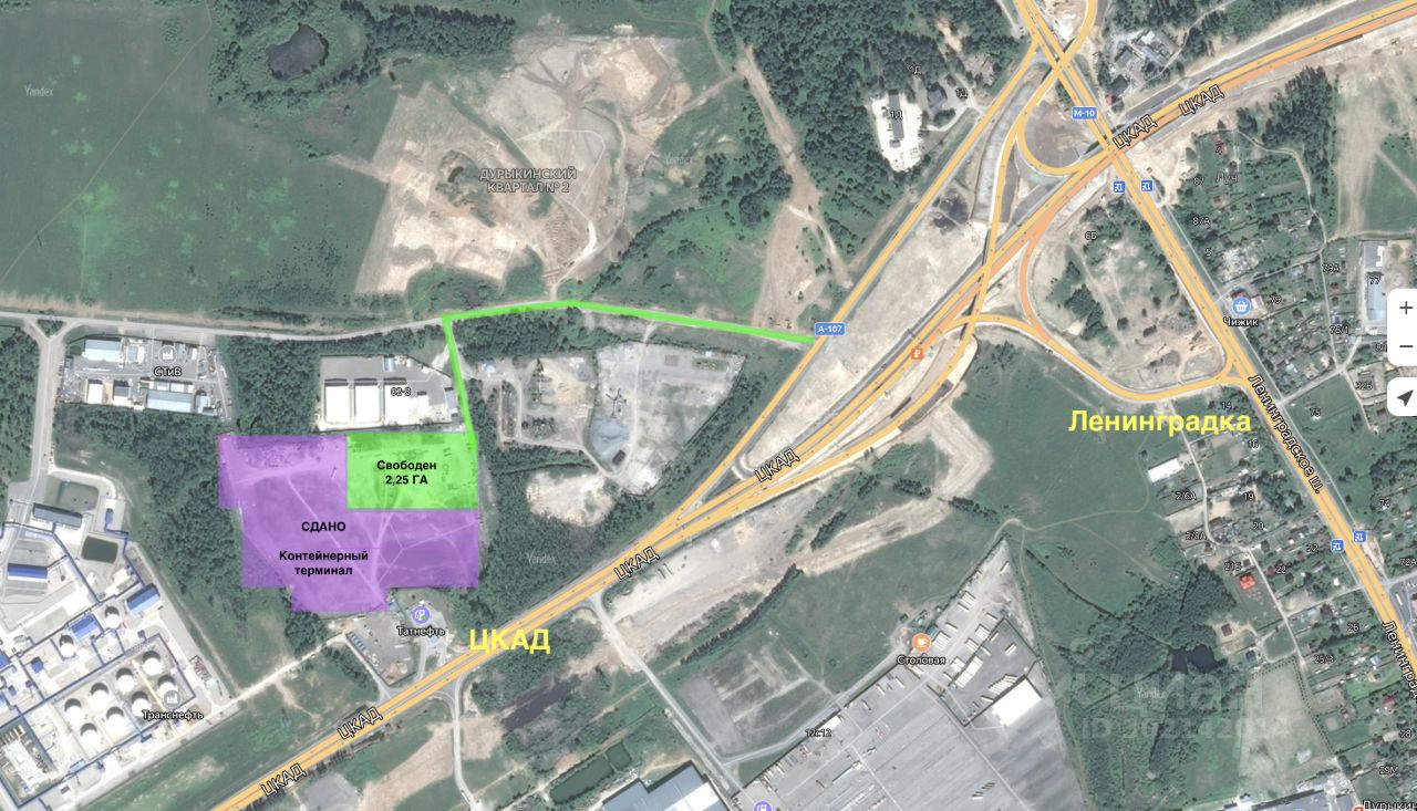 Участок примыкает к ЦКАД и Ленинградскому шоссе (М11).