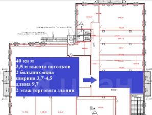 Площадь - 40 кв м , на втором этаже над Пятёрочкой.