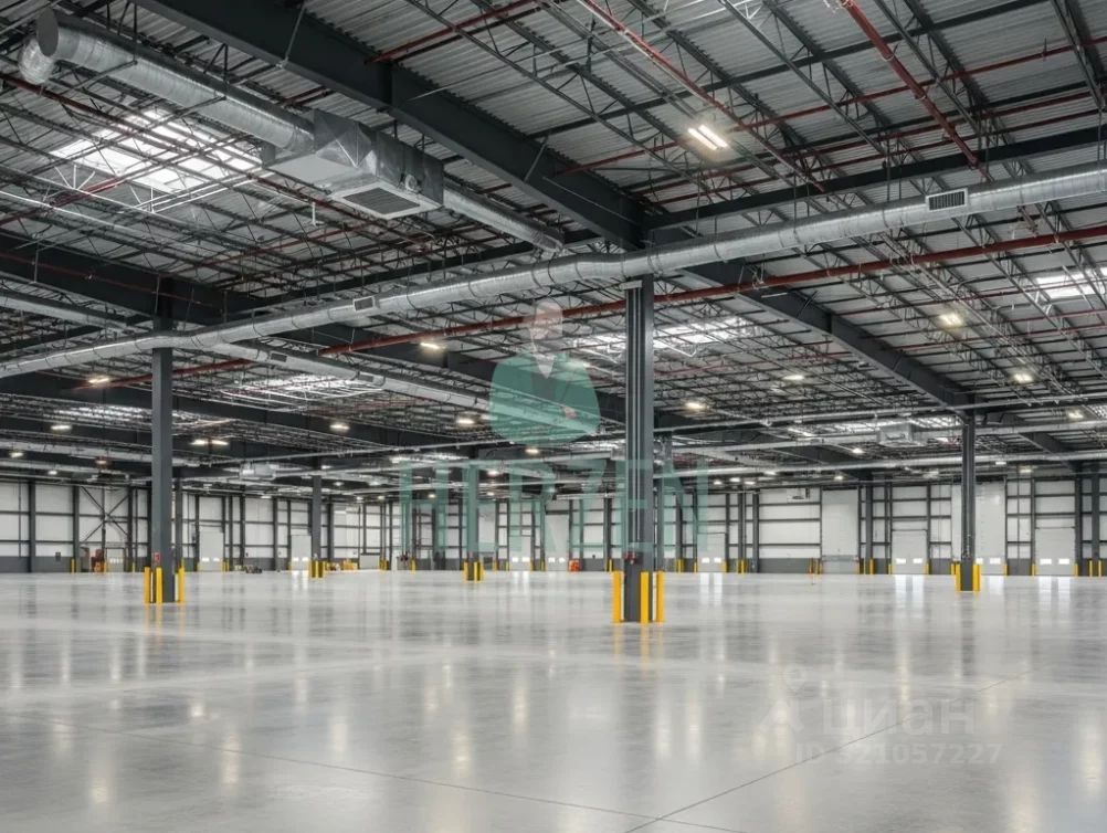 Ровный бетонный пол с антипылевым покрытием. Допустимая нагрузка на пол 6 т/м2