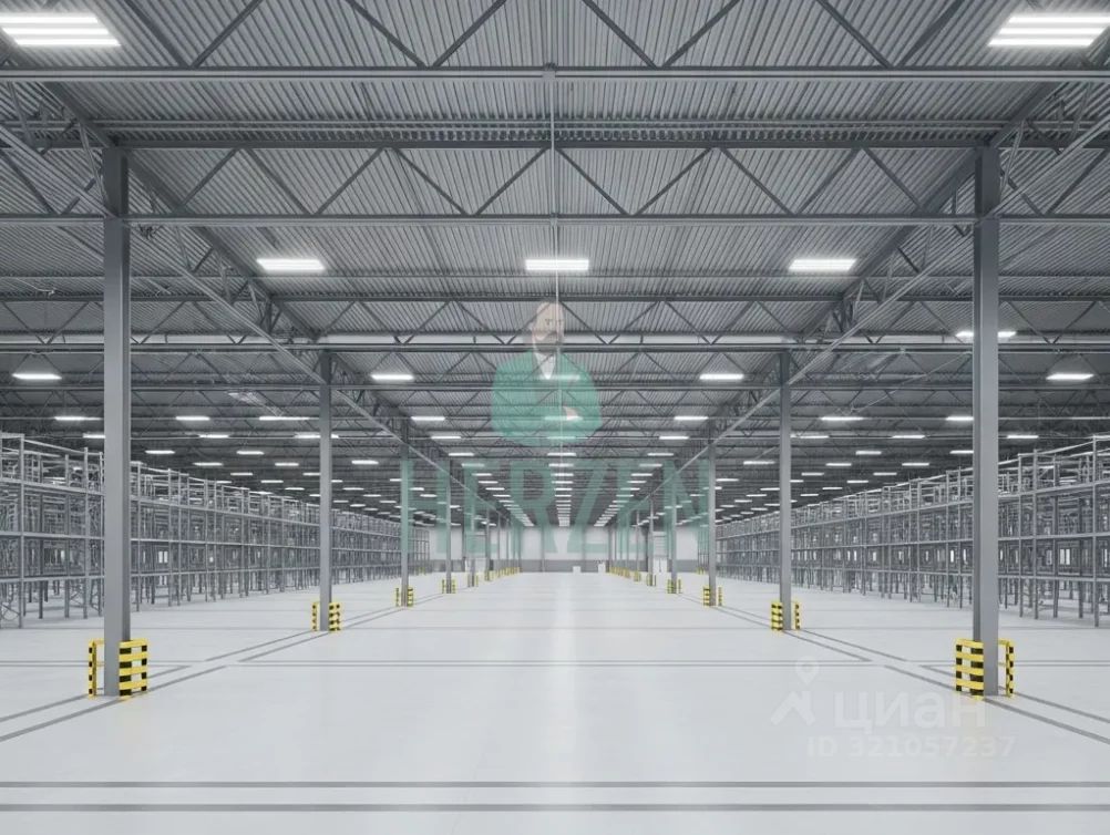Ровный бетонный пол с антипылевым покрытием. Допустимая нагрузка на пол 5 т/м2