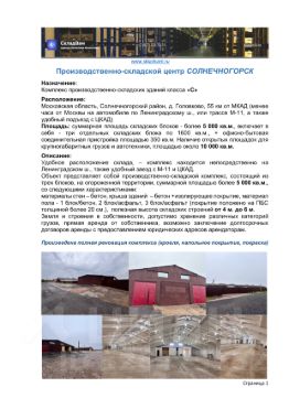 Объект представляет собои производственно-складскои комплекс, состоящии из трех блоков, на огороженнои территории, суммарнои площадью более 5 000 кв.м., со следующими характеристиками:
