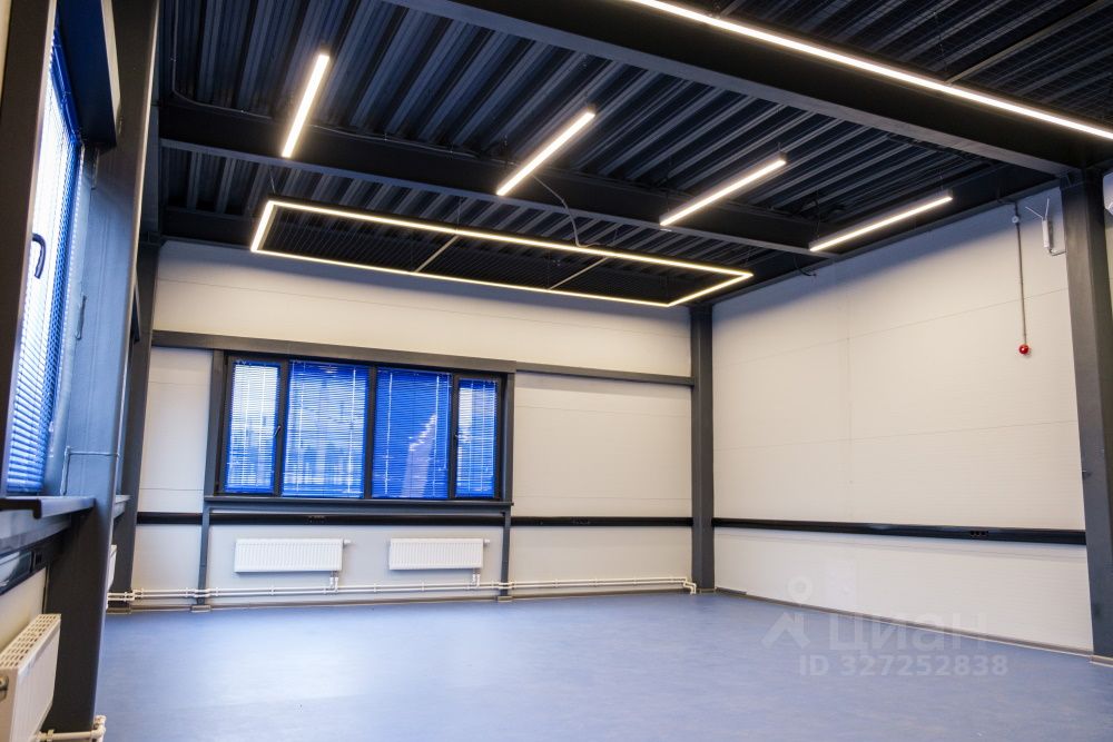Высота потолков 8 м. Колонн нет. Уровень пола нулевой, полы наливные с нагрузкой 4 тонны на квадратный метр.