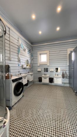 Оборудован учебный класс , есть кухня , большая зона для занятий или столовой , сан узел с кабинками и душевой, раздевалка , по всей площади теплый пол. Так же в здании заведены все коммуникации и работают они автономно , есть своя котельная .