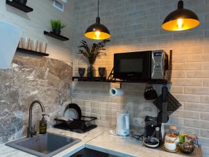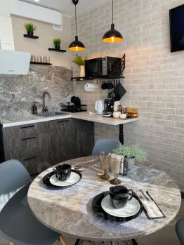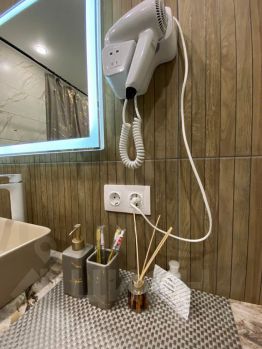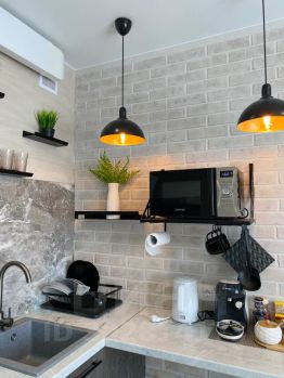 - Укомплектована всем необходимым для комфортного проживания: кровать с ортопедическим матрасом; шторы blackout; два дивана; обеденная зона на четверых человек с разнообразной посудой для приготовления и сервировки; холодильник; плита; микроволновка; чайник; кондиционер; водонагреватель; телевизоры со smart tv; wi-fi; стиральная машина; фен; утюг; гладильная доска; сушилка.