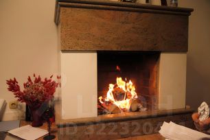 На 1 и 2 этажах кухня с окнами в сад, зал с камином и большим обеденным столом