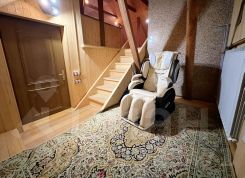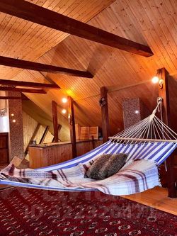 На 3 этаже- уютная и теплая мансарда-всегда вызывает восторг у гостей, особенно у детей. Там есть массажное кресло,2 уютных дивана (2 спальных места) огромный восточный ковер ручной работы, гамак для полного релакса и барная стойка из старинного дуба. Отделана мансарда натуральным деревом и камнем.
