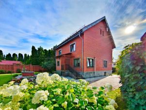 Площадь дома 250 квадратов, 2 жилых этажа, цокольный этаж и теплая жилая мансарда. Участок 12 соток с зоной барбекю.