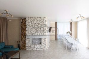 В доме есть доме есть уютная гостиная с панорамным остеклением с декоративным камином и большим столом на 20 персон, где можно провести камерный банкет или фуршет с красивой фотосессией.