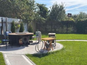 Отдых на природе около леса; зона барбекю с костровой чашей и уличным камином; активные игры на участке; горячая вода; комфортный и уютный сон.