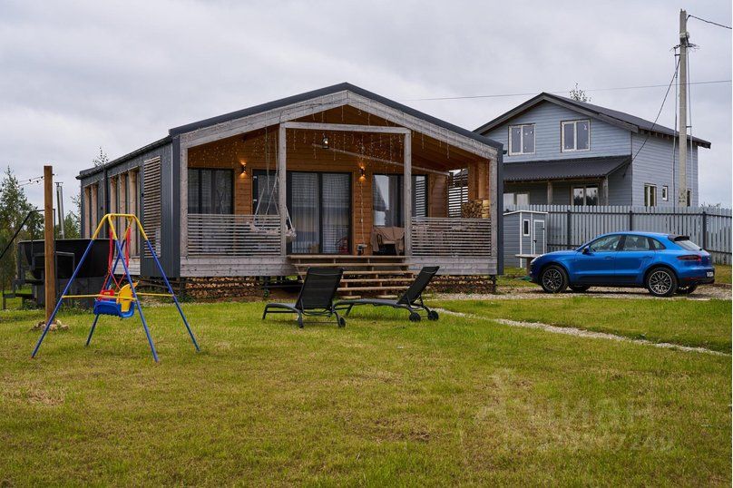 Стильный барнхаус с панорамными окнами, просторной террасой и большим участком в посёлке у озера Сенеж.