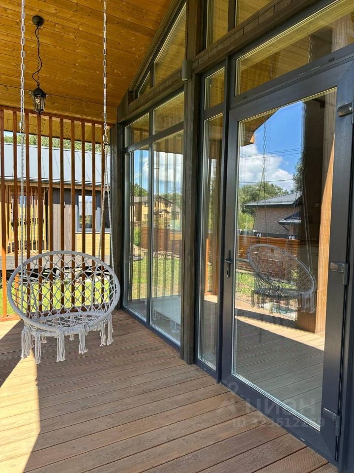 Панорамные окна наполняют пространство светом и открывают вид на зелень. Открытая терраса с барбекю и качелями станет любимым местом для встреч и отдыха на свежем воздухе.