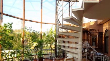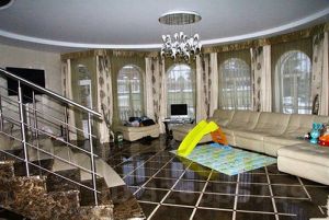 Особенностью дома является зимний сад с винтовой лестницей, ведущей в кабинет. В цокольном этаже находятся зоны для отдыха и развлечений: бильярдная, тренажерный зал, бассейн, сауна и массажная комната. Также предусмотрены гардеробные и подсобные помещения.