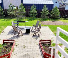 -организована зона барбекю с мангалом, чашей для костра, креслами для отдыха.