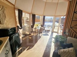 "Дом СФЕРА самый необычный домик на нашей базе. Форма дома придает уютную и загадочную атмосферу, здесь Вы можете одновременно воспользоваться баней и чаном*, такая смена обстановки подойдет для людей ищущих чего-то нового для себя.