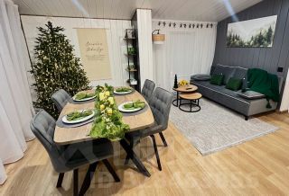 2. Кухня-гостиная с панорамными окнами с красивым видом, с диваном-кроватью 150х200, большим раздвижным столом, комфортабельными стульями и теплым полом;