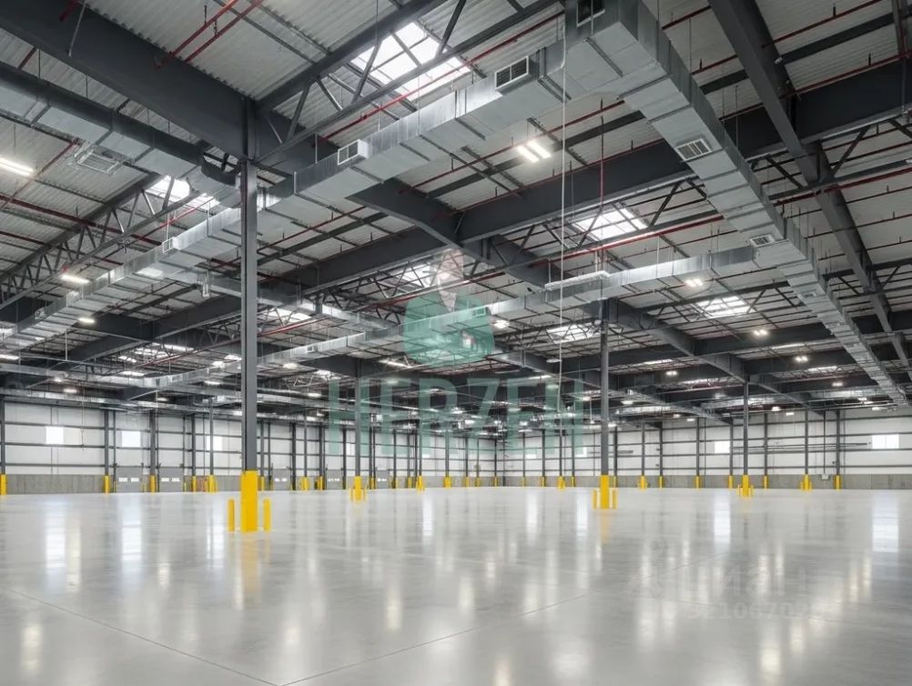 Ровный бетонный пол с антипылевым покрытием. Допустимая нагрузка на пол 5 т/м2
