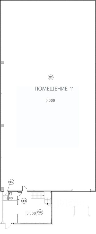 Планировочное решение включает в себя пространство для производства, склад или логистику 644,4 кв.м, а также офисную часть 109,93 кв.м