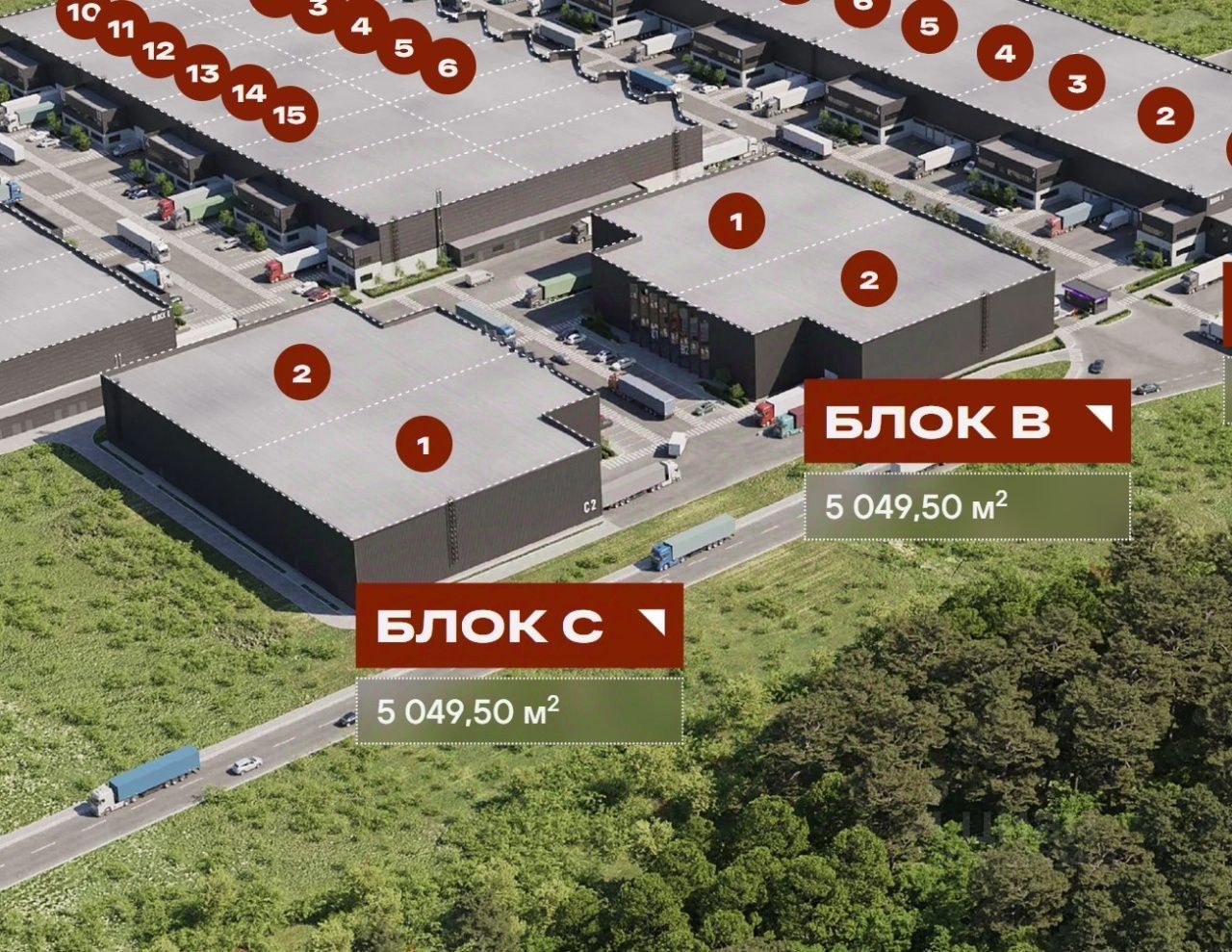 Описание помещения: Блок B - 5049,5 м2 из двух боксов