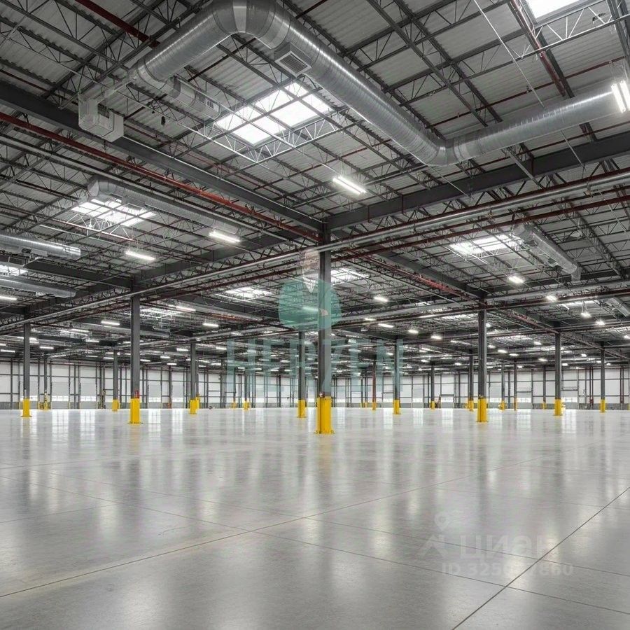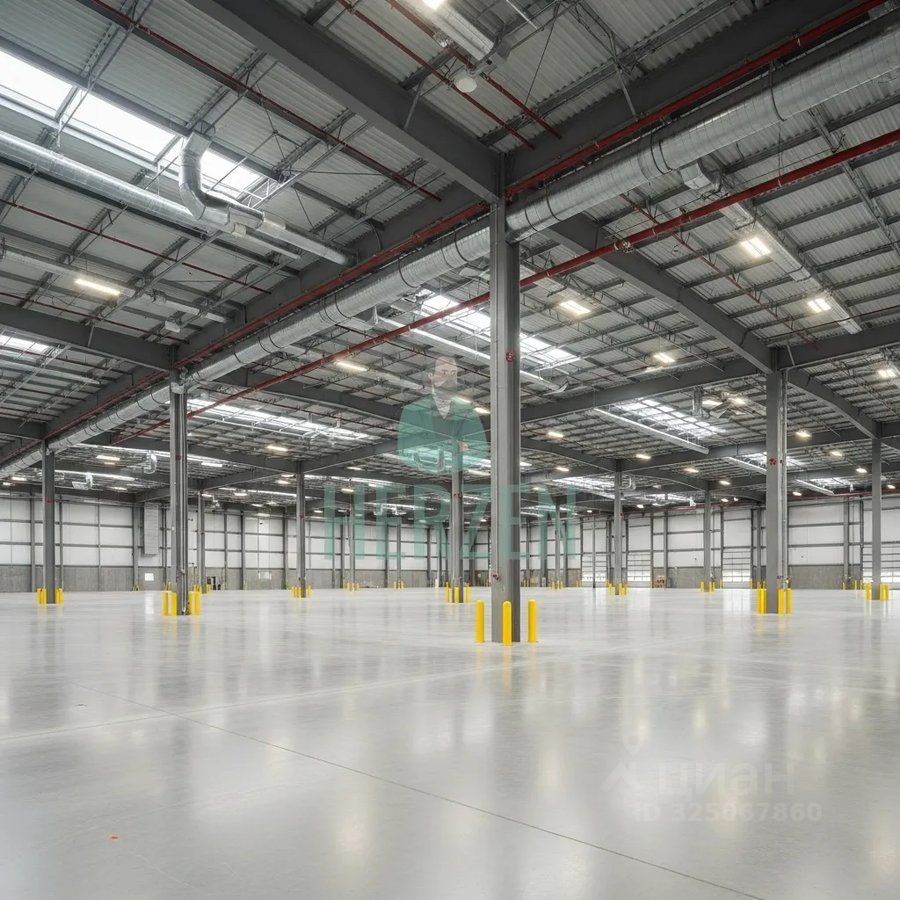 Ровный бетонный пол с антипылевым покрытием. Допустимая нагрузка на пол: первый этаж 7 т/м2.; второй этаж 1,2 т/м2.