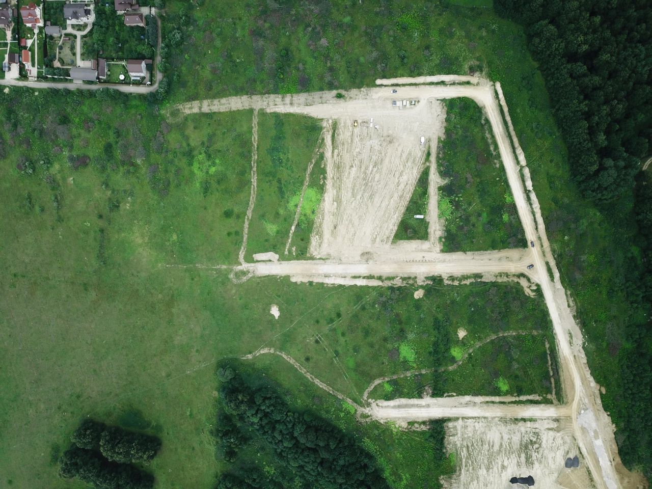 подъездные пути к промпарку с трассы А-107, дороги по территории, позволяющие заезд на участок большегрузного автотранспорта и спецтехники;