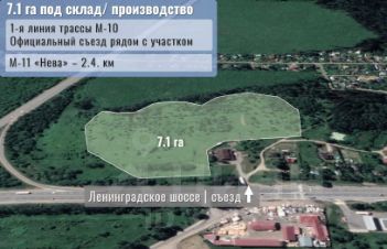 7.1 га промназначения на 1-й линии Ленинградского шоссе под ЦОД, складской или производственный комплекс. Солнечногорский район, д. Дубинино.