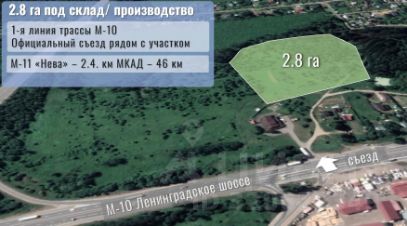 Земельный участок промназначения 2,8 га на 1-й линии М-10 (Ленинградское шоссе) для складского или производственного комплекса, ЦОД.