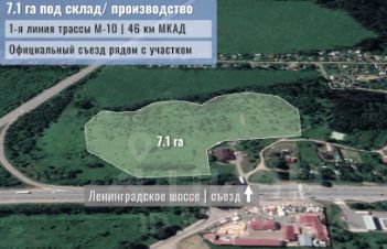 7.1 га промназначения на 1-й линии М-10 (Ленинградское шоссе) под склад, производство, ЦОД. Солнечногорский район, д. Дубинино.