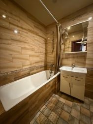Дом ухоженный, с двумя лифтами — пассажирским и грузовым. Наличие мусоропровода избавит вас от лишних хлопот. Есть наземная парковка, что удобно для владельцев автомобилей. Вокруг дома чисто и зелено, во дворе дома есть детская и спортивная площадки, что делает расположение квартиры особенно удобным для семей с детьми.