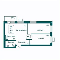 Продаётся 2-комнатная квартира в строящемся доме (Корпус 2), срок сдачи: IV-кв. 2025, общей площадью 69.1 кв.м., на 13 этаже. Жилой комплекс "Андреевка LIFE" от застройщика "ГК СтройИнновация" в Московской области, р.п. Андреевка, ул. Георгиевское шоссе.