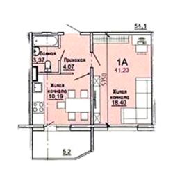 Продаётся 1-комнатная квартира в сданном доме (Парковый бульвар, 3к2), срок сдачи: IV-кв. 2023, общей площадью 41.2 кв.м., на 8 этаже.