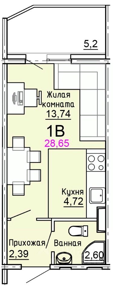 Общая площадь28,7 м²