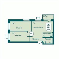 Продаётся 2-комнатная квартира в строящемся доме (Корпус 5), срок сдачи: IV-кв. 2025, общей площадью 69.1 кв.м., на 14 этаже. Жилой комплекс "Андреевка LIFE" от застройщика "ГК СтройИнновация" в Московской области, р.п. Андреевка, ул. Георгиевское шоссе.