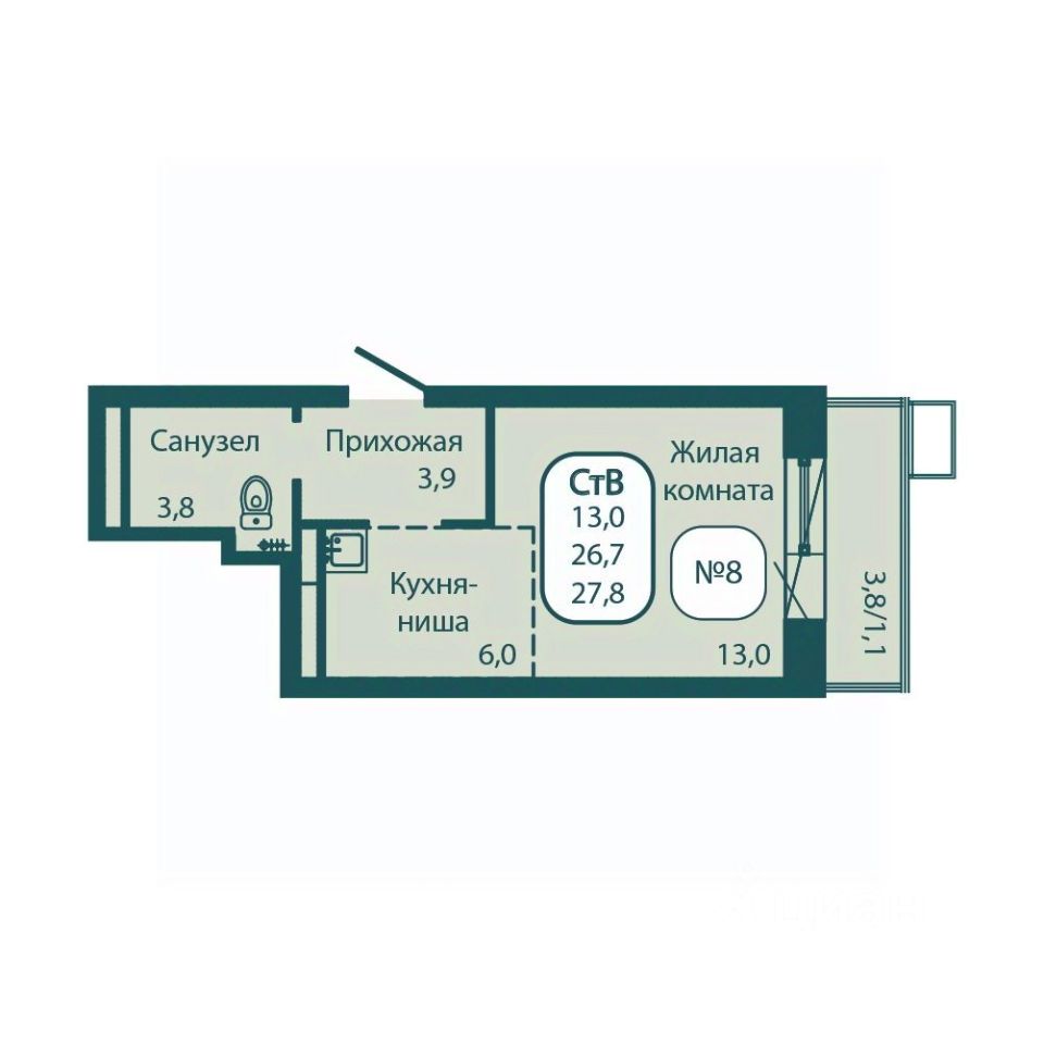 Общая площадь27,8 м²