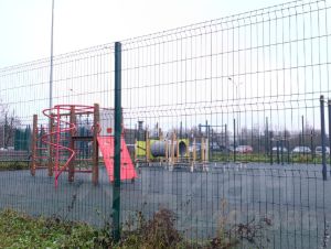 Дому принадлежит 5 закрытых спортивных и детских площадок.