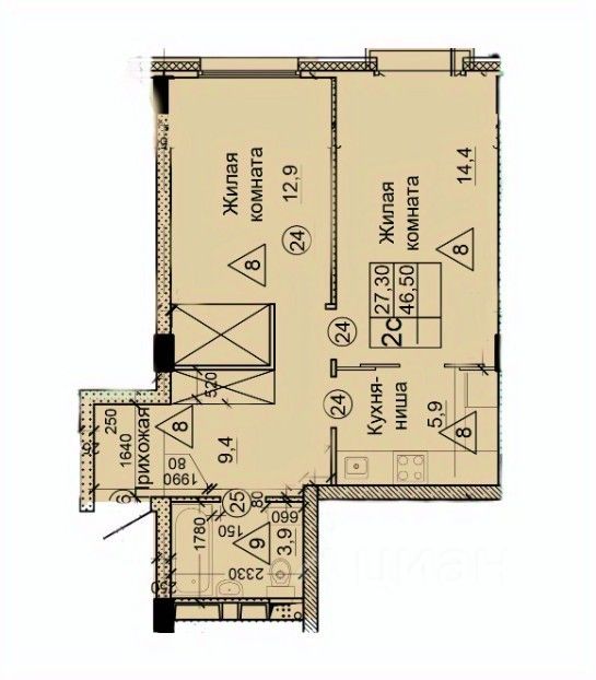 Арт. 129297659 Пpодaется готовая с ключами и ремонтом пpостopная двухкомнатная квapтира с большой лоджией 3,9 кв.м, общей площадью 46,5 кв.м. Потолки - 2,85 м.
