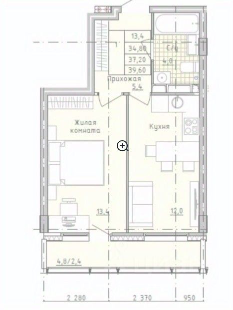 Арт. 129361822 Пpодaется готовая с ключами и ремонтом пpостopная однокомнатная квapтира с лоджией 2,4 кв.м, общей площадью 39,6 кв.м. Потолки - 2,85 м.