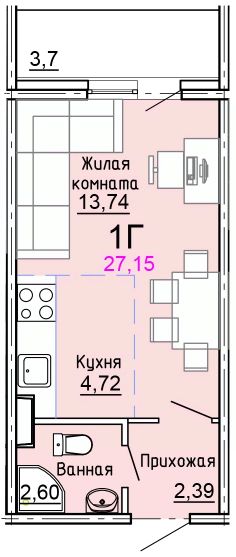 Продаётся 1-комнатная квартира в сданном доме (Парковый бульвар, 3к2), срок сдачи: IV-кв. 2023, общей площадью 27.2 кв.м., на 5 этаже.