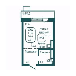 Общая площадь28,1 м²