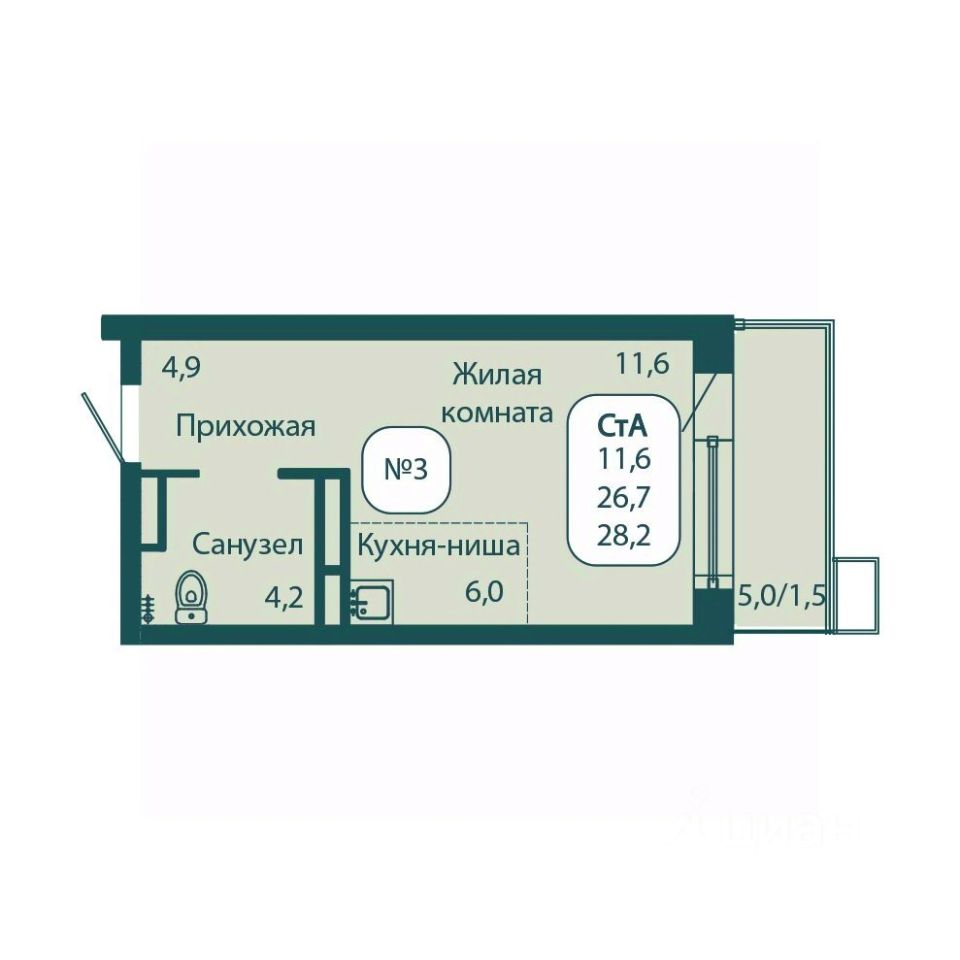 Общая площадь28,2 м²