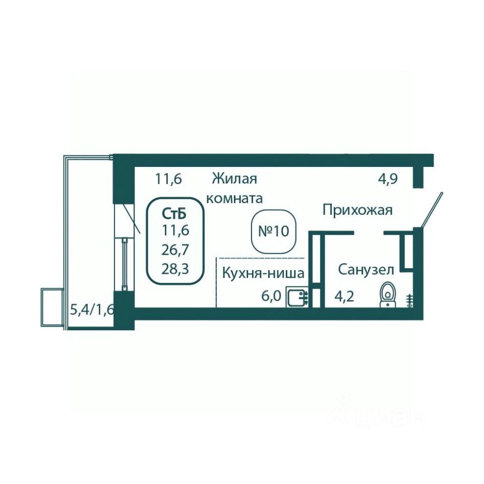 Общая площадь28,3 м²