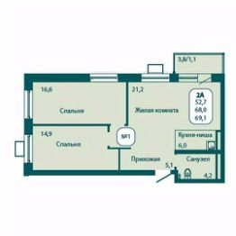 Продаётся 2-комнатная квартира в сданном доме (Корпус 2), срок сдачи: IV-кв. 2025, общей площадью 69.1 кв.м., на 16 этаже. Жилой комплекс "Андреевка LIFE" от застройщика "ГК СтройИнновация" в Московской области, р.п. Андреевка, ул. Георгиевское шоссе.